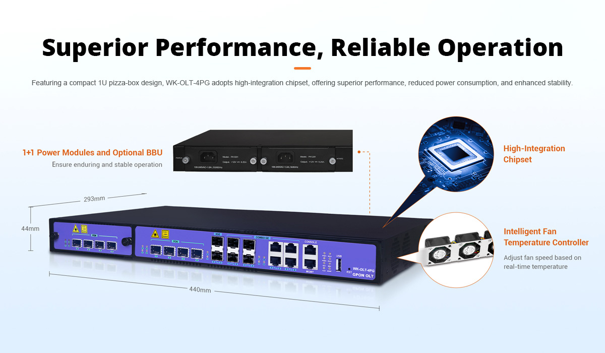 Wolck's plug-and-play GPON OLT stands out thanks to its multiple core advantages in design, performance, and management.