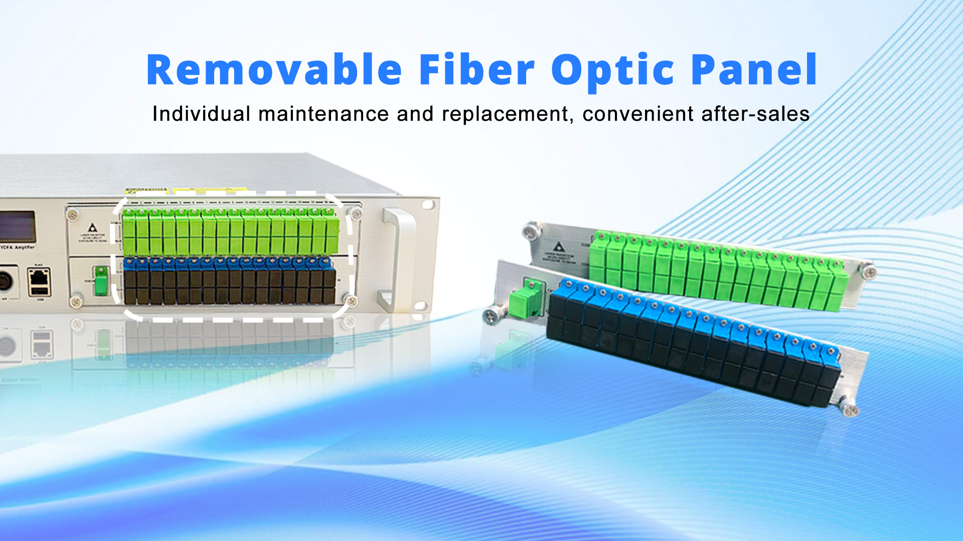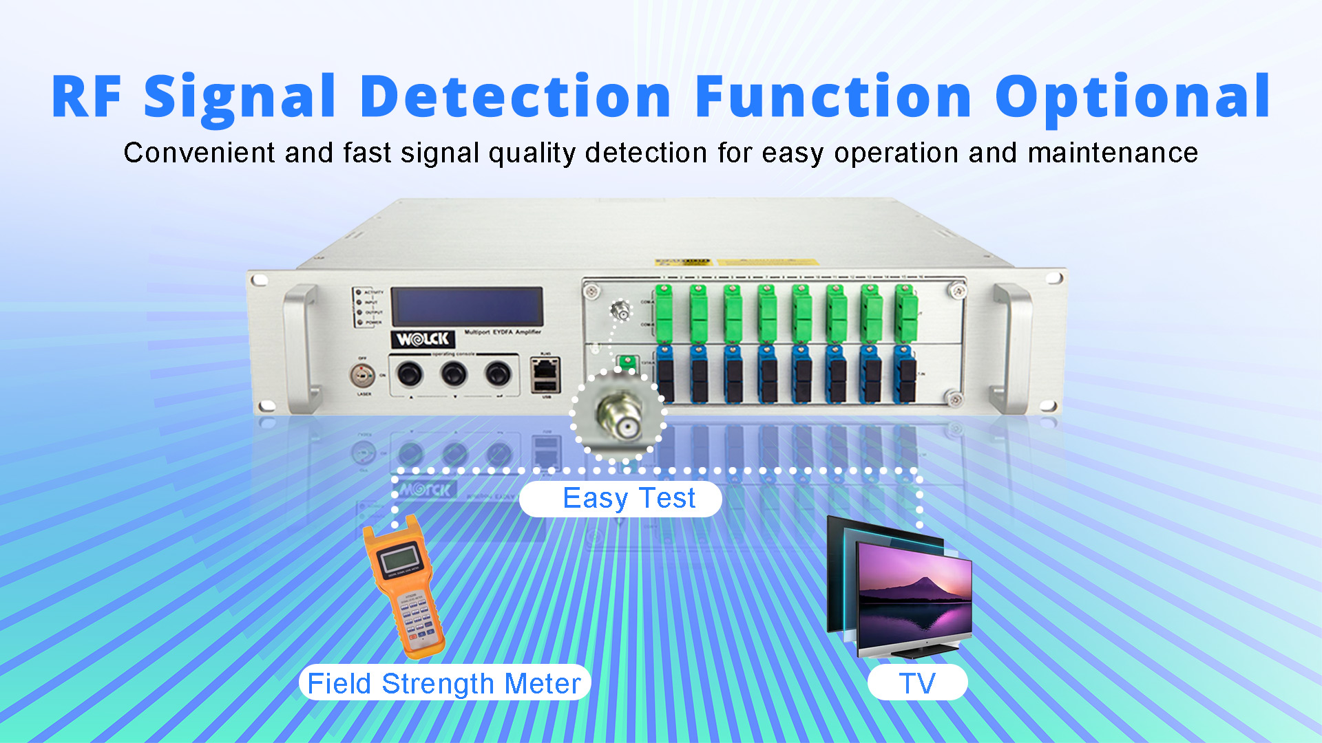 (3) Función de mantenimiento de una atenuación descendente única de 6dBm mediante botones en el panel frontal o en la red SNMP, para facilitar la operación de conexión en caliente de fibra óptica sin apagar el dispositivo